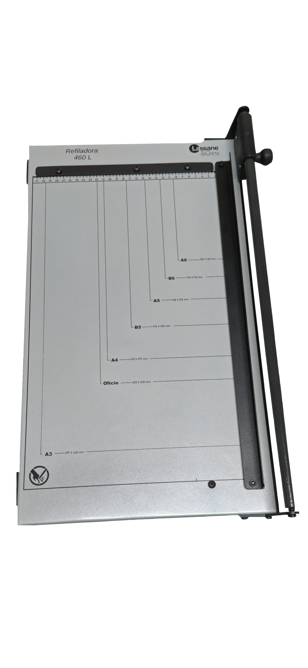 Este modelo de guilhotina de corte rotativo LASSANE permite a execução de cortes até 46 cm.
